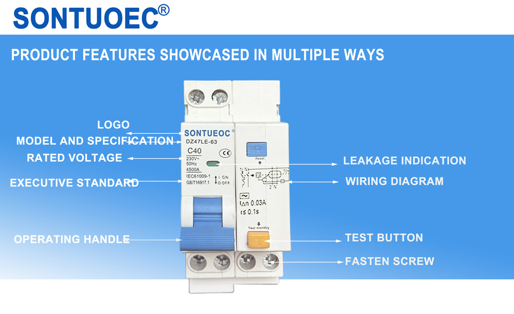 SONTUOEC는 다양한 소형 전기 제품 생산을 전문으로 하는 중국 공급업체/제조업체 중 하나입니다. DZ47LE는 단극 2선용 AC 50/60Hz 정격 전압 230V, 2극 또는 3극, 3극 4선용 400V 라인에 적용 가능합니다. 4극 및 정격 전류는 최대 63A입니다. 과부하 및 단락으로부터 라인과 모터를 보호할 수 있습니다. 또한 간헐적인 라인 변환 및 간헐적인 모터 시동에도 사용할 수 있습니다. IEC61009.1 표준을 준수합니다.